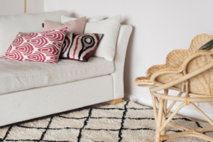 Vi har et stort utvalg vintage berbertepper som både kan virke samlende eller bidra med kontraster. Vakre beige toner eller sterke farger. Våre kelimtepper spenner også fra rolig til den spenstige typen. Om du ønsker noe mer helhetlig og loungy anbefaler vi at du ser på våre nomadetepper – disse kan bestilles på mål og bli så store som 6 x 4.5 meter. Da vil du kunne sette hele møbelgruppen på teppet.