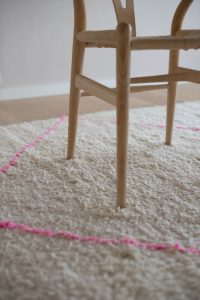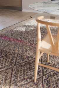 Under spisebordet kan et lyst og flossy ullteppe som Beni Ourain være litt upraktisk. Har du små barn og mye matsøl vil jeg fraråde det. Et vintageteppe vil være langt enklere å rengjøre, mat setter seg ikke ned i teppet og søl vil ikke synes på samme måte;-) Vi har nå også et godt utvalg kelimer og disse er flatvevde ulltepper som også enkelt holdes vedlike. Du kommer langt med en støvsuger og en fuktig klut med Zalo.