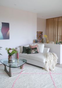 Jeg er også opptatt av naturlige materialer og under både sofa- og spisegruppe går jeg for ull. Da holder jeg meg varm på beina gjennom vinteren.