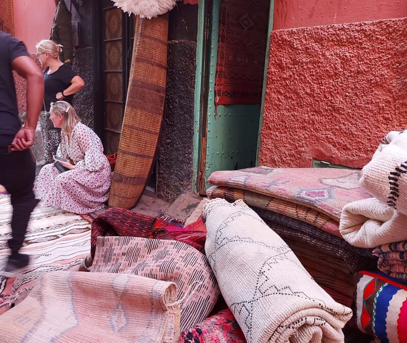 I ettertid har jeg reist landet rundt sammen med Amina, en herlig marokkansk dame jeg er så heldig å ha blitt godt kjent med. Amina er arkitektutdannet i New York, men har viet hele sitt liv til håndverk. Sammen har vi reist Marokko rundt med buss, tog og taxi. Vi har besøkt landsbyer der det ikke finnes et hus uten en vev og byer med kunstnere som tryller med blant annet leire, skinn og nål.