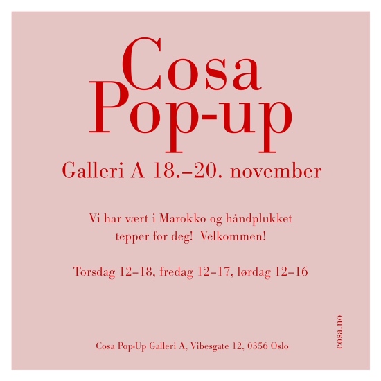 18.- 20. november pakker vi med oss teppene og kommer til Galleri A i Vibesgate, Oslo.