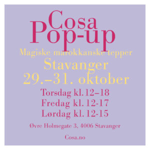 Da Norge stengte ned i mars sto vi litt slukøret med 40 tepper i Stavanger. Pop-up ble avlyst, men nå prøver vi oss igjen!! Stavanger debut blir siste helgen i oktober og vi får opp en helt ny levering med tepper som skal med. Vintagetepper, løpere og Beni Ourain for det meste. Alle vintageteppene er laget av kvinner til eget bruk og husk at de er helt unike. Kun et eksemplar av hver, ingen er like. Så det betyr at her gjelder det å være tidlig ute:-)