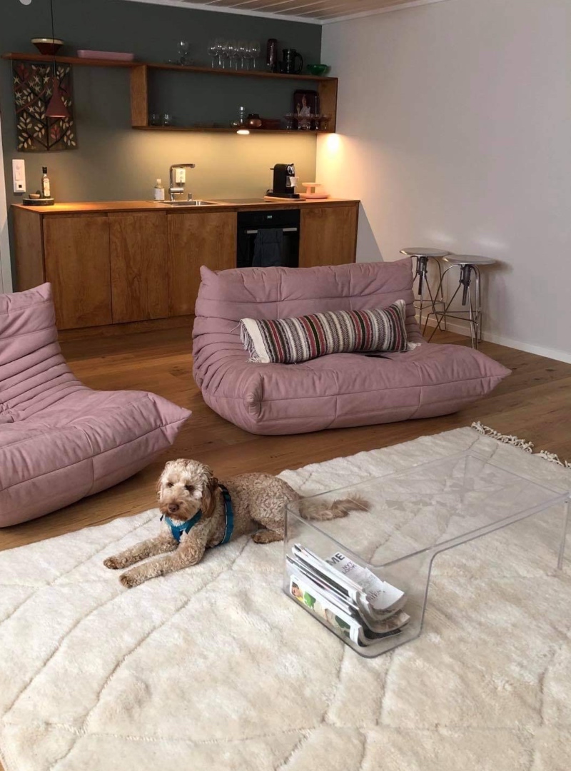 Teppet er selvrensende og flekker kan enkelt vaskes bort med vann eller våtservietter. Kan renses.