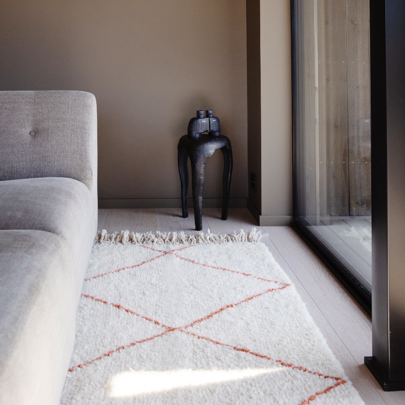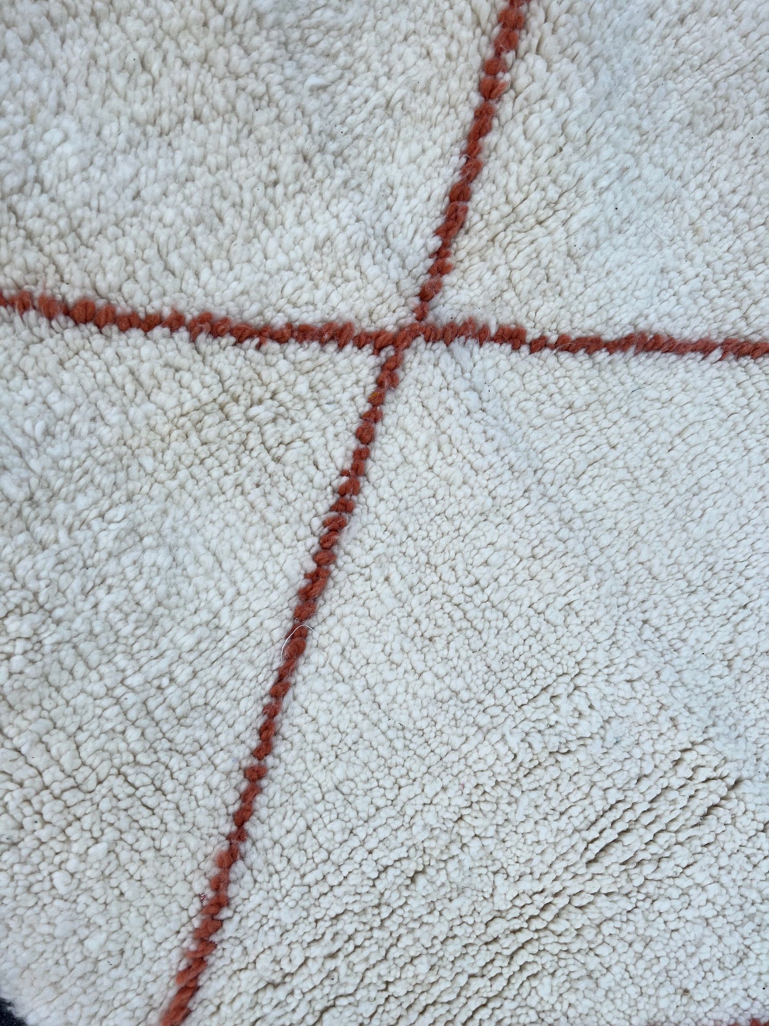Etter berbertradisjon har teppene kun frynser på den ene siden. Hvert eneste teppe er unikt. Beni Ourain-teppene er tidløse og klassiske i sin enkelhet og passer inn i alle interiører. Det vil garantert gi hele rommet et løft.