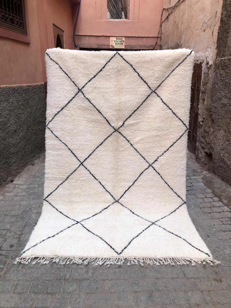 Etter berbertradisjon har teppene kun frynser på den ene siden. Hvert eneste teppe er unikt. Beni Ourain-teppene er tidløse og klassiske i sin enkelhet og passer inn i alle interiører. Det vil garantert gi hele rommet et løft.