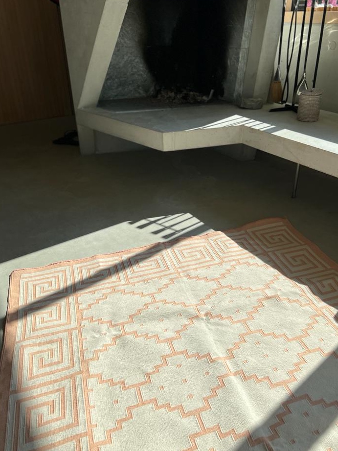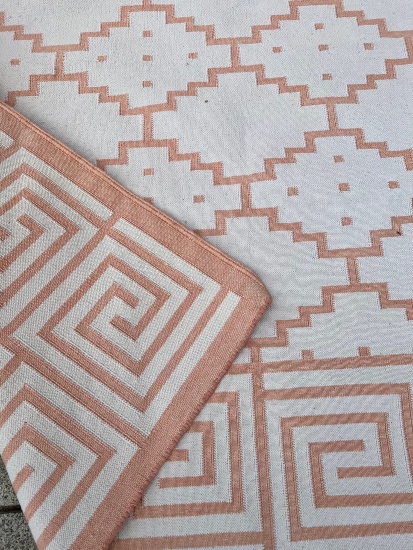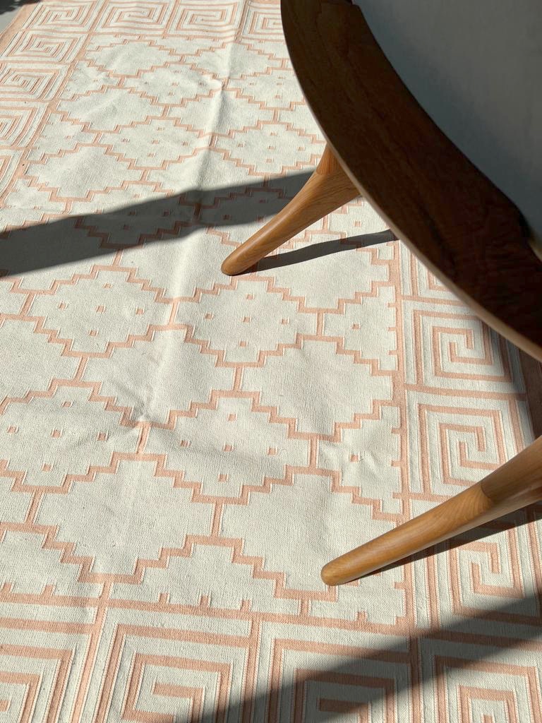 Dette teppet er delikat og helt nydelig i rosa/aprikosfargen!!