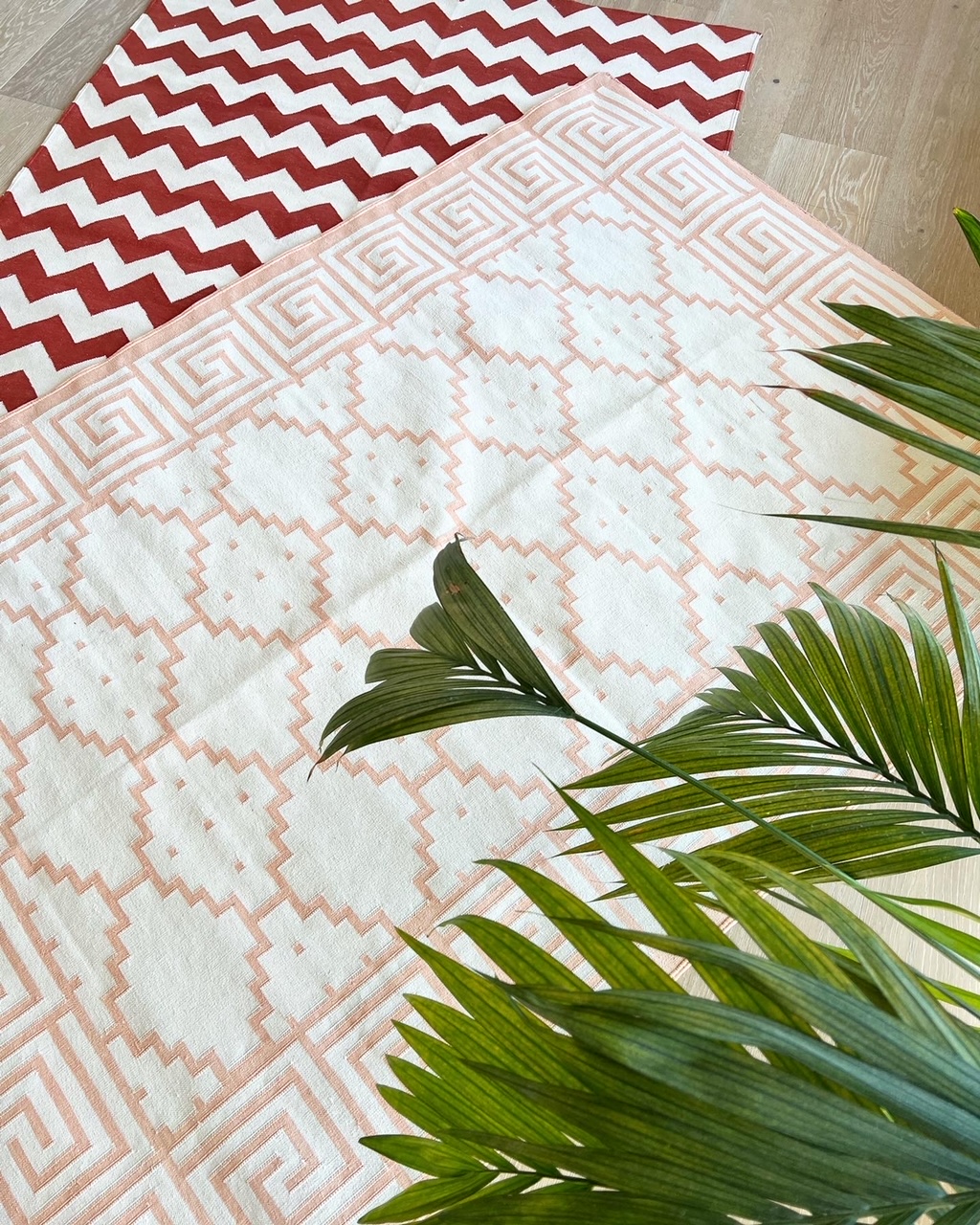 Våre Dhurries er håndvevd i India av dyktige håndverkere hvis fedre og forfedre har vevd tepper i århundrer. Vi er opptatt av å ivareta gamle håndverkstradisjoner for at de skal leve videre. Våre bomullstepper er vevd i 100 % bomull. De er glatte og flate.