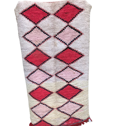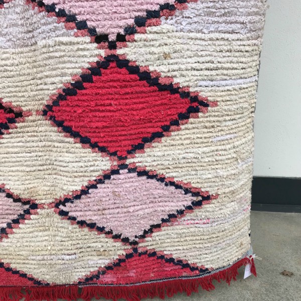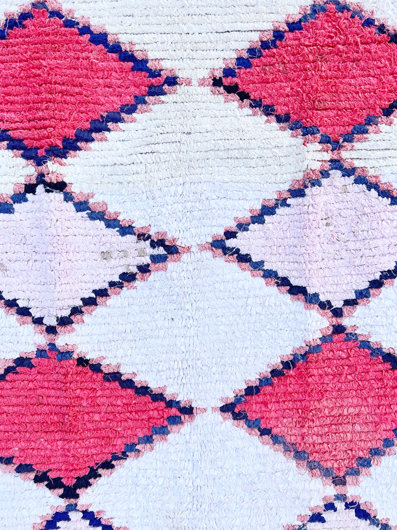 Boucherouite teppene er magiske kunstverk, vevd av berberkvinner. Tradisjonelt ble teppene vevd for privat bruk, med de materialer man har for hånden, stort sett bomull og syntetiske stoffer. Teppene er helt unik i forhold til alle andre tepper og det gjør dem både enestående og populære. De er vevd freestyle og mønsteret er ofte asymetrisk. Den marokkanske versjonen av den norske filleryen. One of a kind!