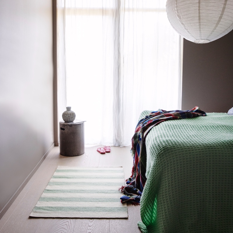 Dette teppet kan du også få i flere andre farger eller bestille i andre mål. Både ensfarget, tofarget og stripete.