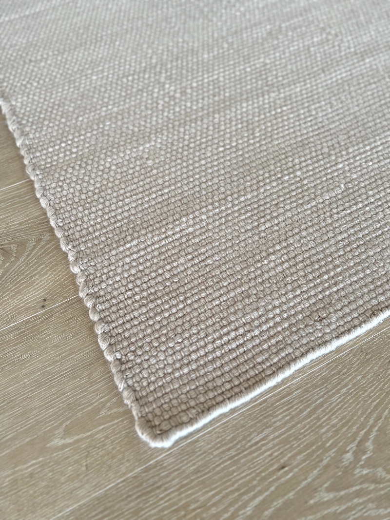 Vakre tepper vevd for hånd. Nydelig håndverk! Vi bruker New Zealand-ull i den fineste kvaliteten. Teppene er myke og slitesterke. Ensfarget beige. Elsker disse små mattene som kan slenges hvor som helst!