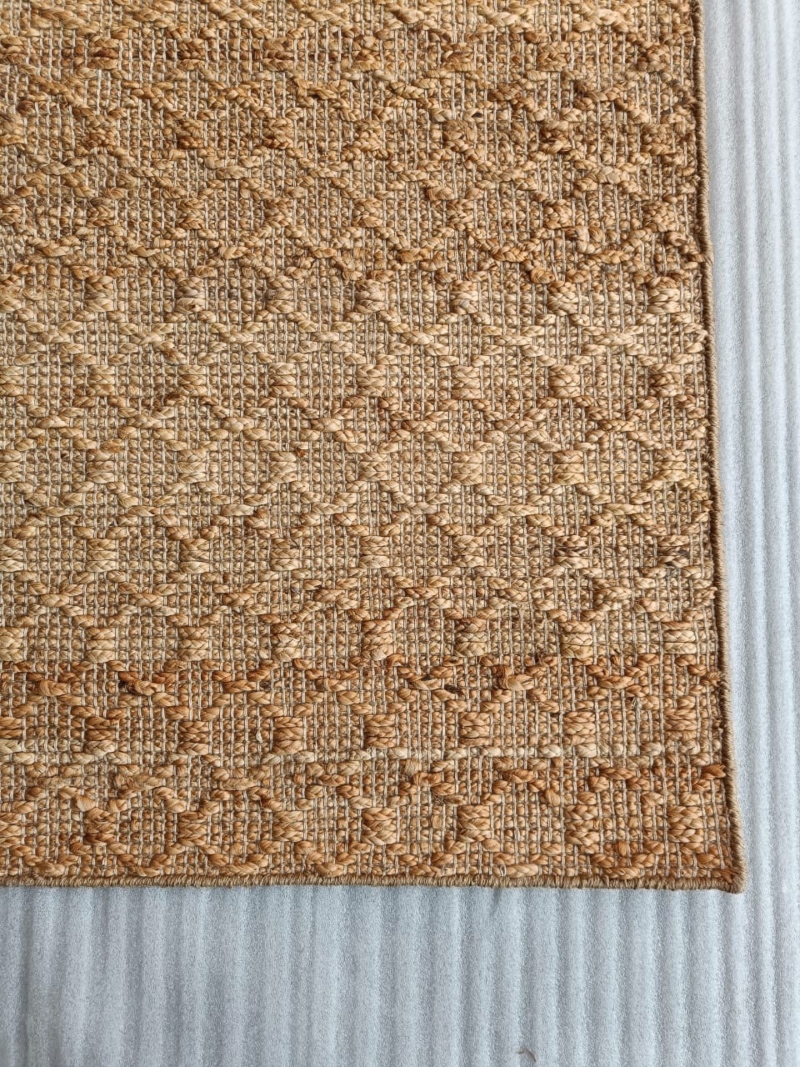 Dette vakre juteteppet kan du bestille i de målene du ønsker. Nydelig kvalitet og nydelig utførelse. Håndvevd jute er langt mer slitesterk og estetisk penere enn sisal. Helt nydelig håndverk av våre dyktige vevere.