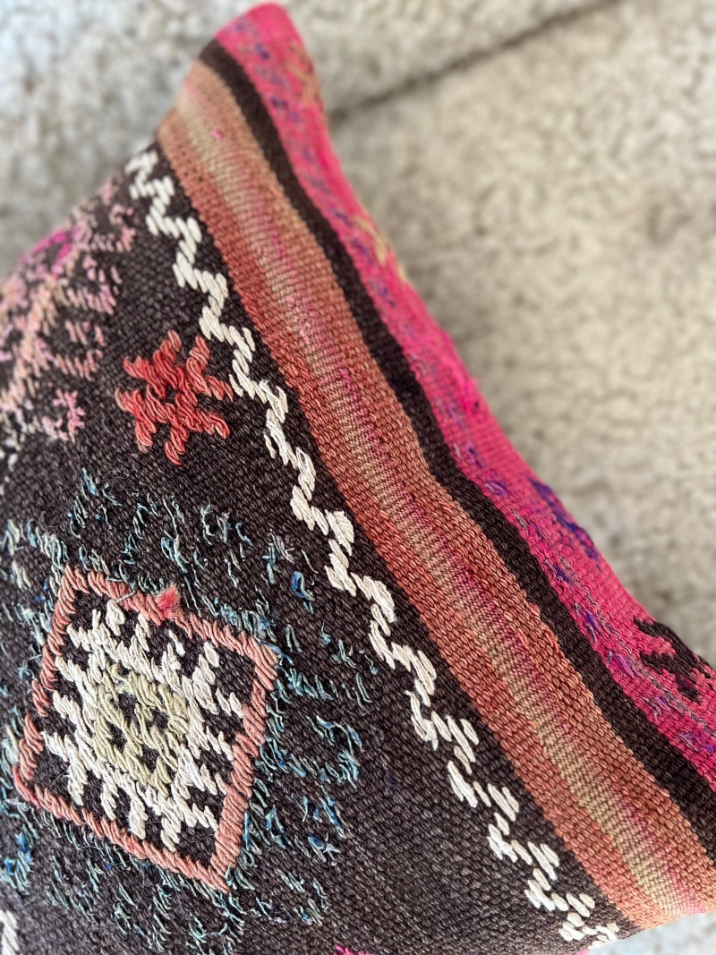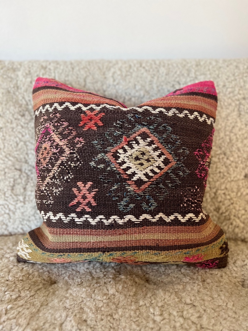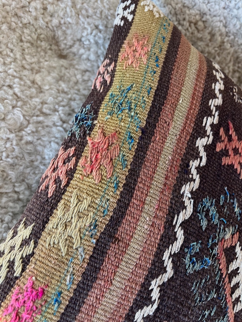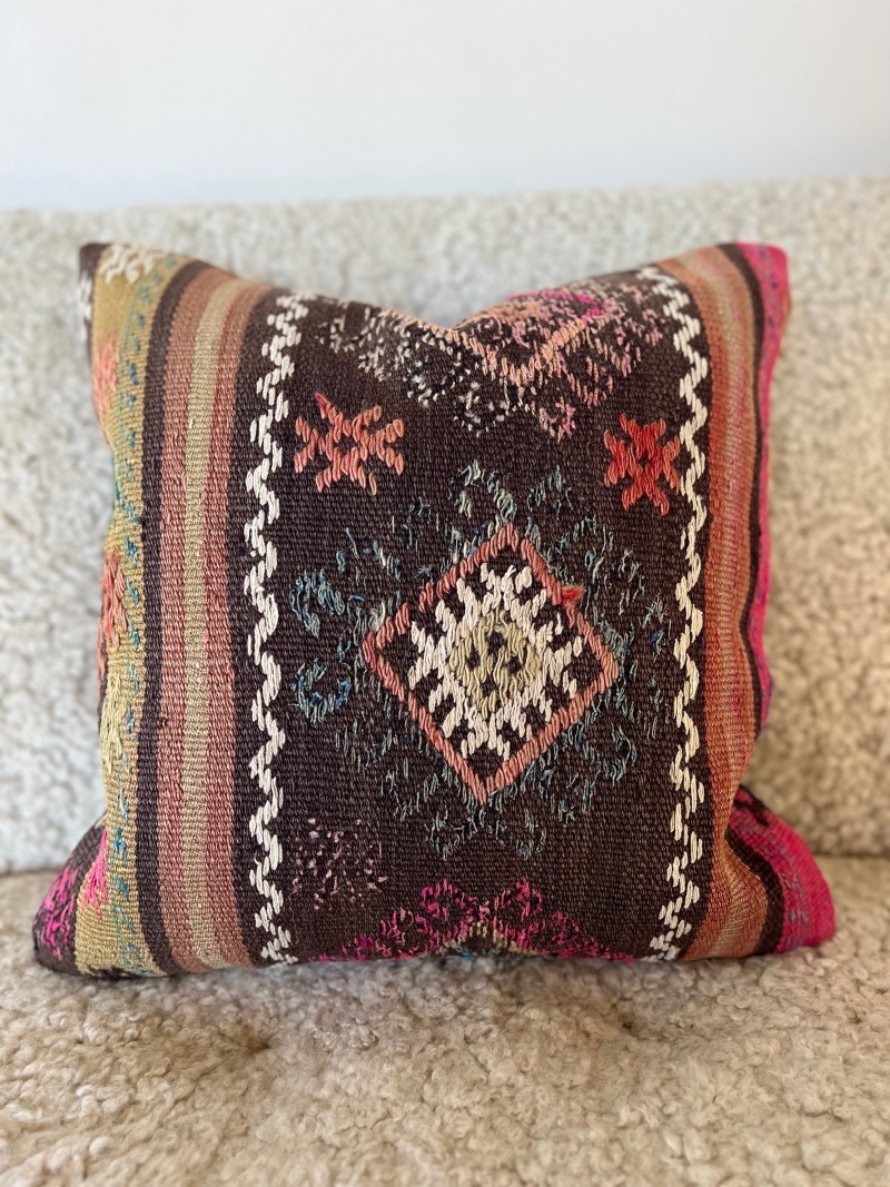 Nydelig putetrekk i nydelige naturfarger. Disse vakre kelimputene er i høy kvalitet og er pent sydd. Hvert putetrekk er helt unikt, finnes kun i et eksemplar.