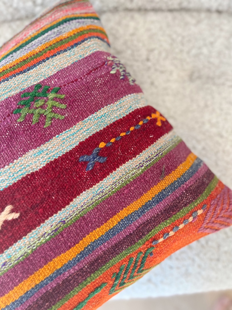 Pute i håndvevd kelim i 100% ull. Putetrekk bakside 100% bomull.