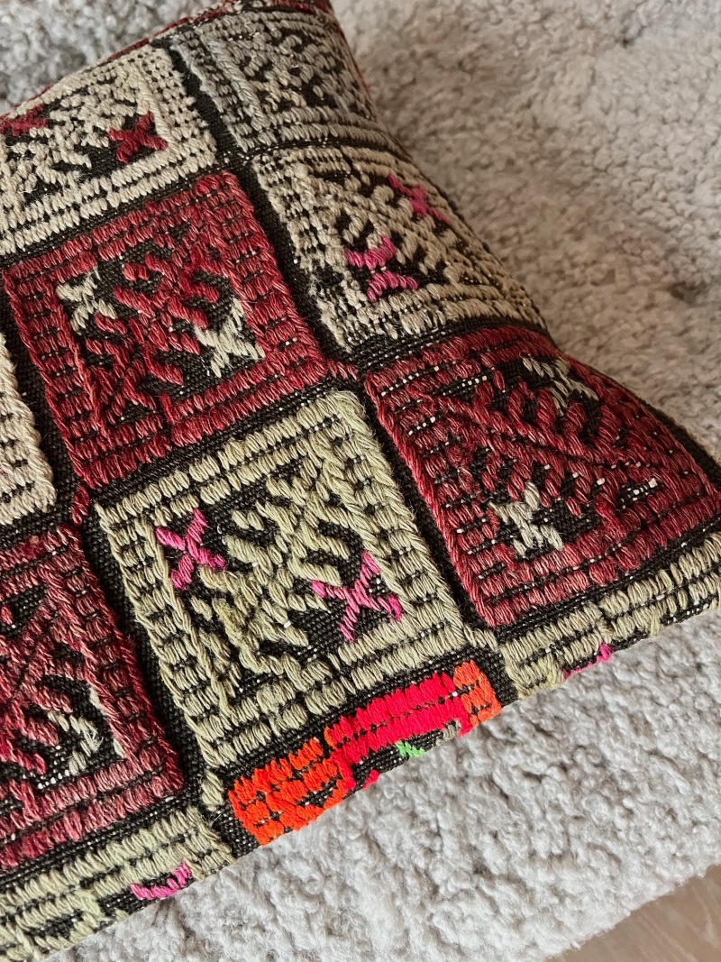 Pute i håndvevd kelim i 100% ull. Putetrekk bakside 100% bomull.