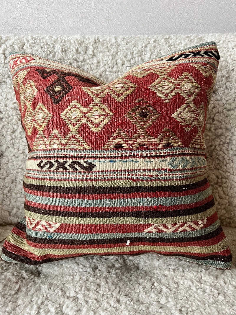 Nydelig putetrekk i friske og klare farger. Disse vakre kelimmoutene er i høy kvalitet og er pent sydd. Kan kjøpes med eller uten innmat - opp til deg! Hvert putetrekk er helt unikt, finnes kun i et eksemplar.