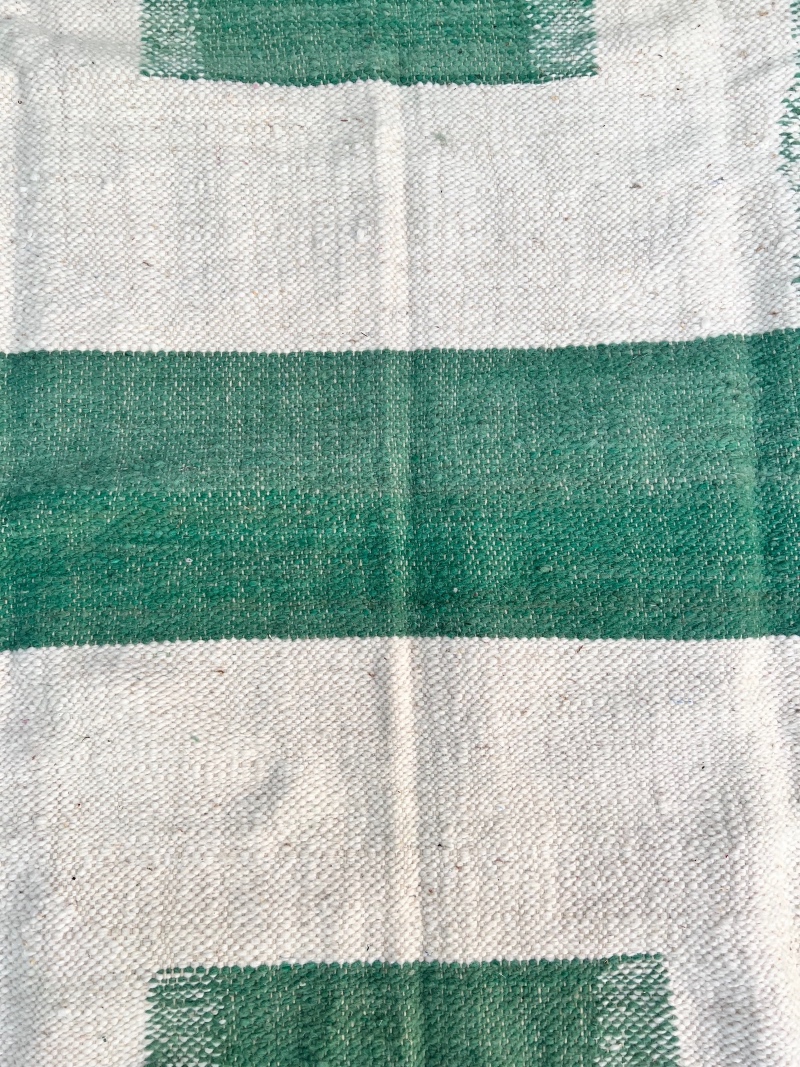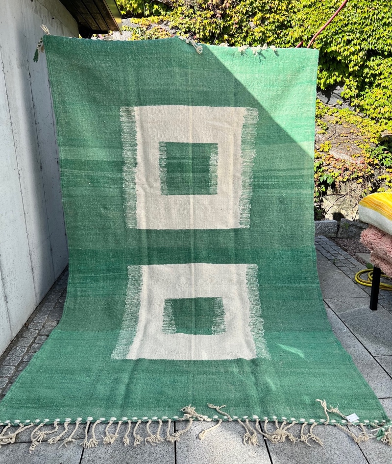 Kelimen er vevd for hånd og skjønnhetsfeil kan forekomme. Vi mener dette øker verdien på håndverk, er det som er sjarmen. Teppet kan ristes og støvsuges.