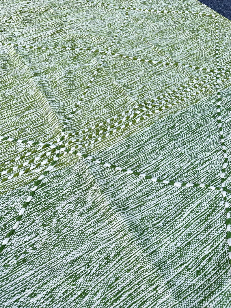 Kelimen er vevd for hånd og skjønnhetsfeil kan forekomme. Vi mener dette øker verdien på håndverk, er det som er sjarmen. Teppet kan ristes og støvsuges.
