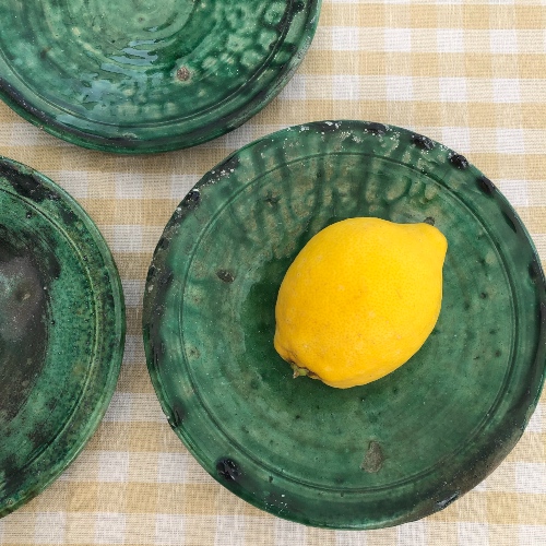 Vi har tatt inn noe marokkansk tamegroute keramikk laget for hånd i Sahara. Denne type keramikk er laget med enkle redskaper og er tung og uvøren, men helt fantastisk. Alle produktene kommer med små skjønnhetsfeil og nettopp det er en del av sjarmen her. Har hatt både skåler og lysestaker i tamegroute i mange år - blir aldri lei!