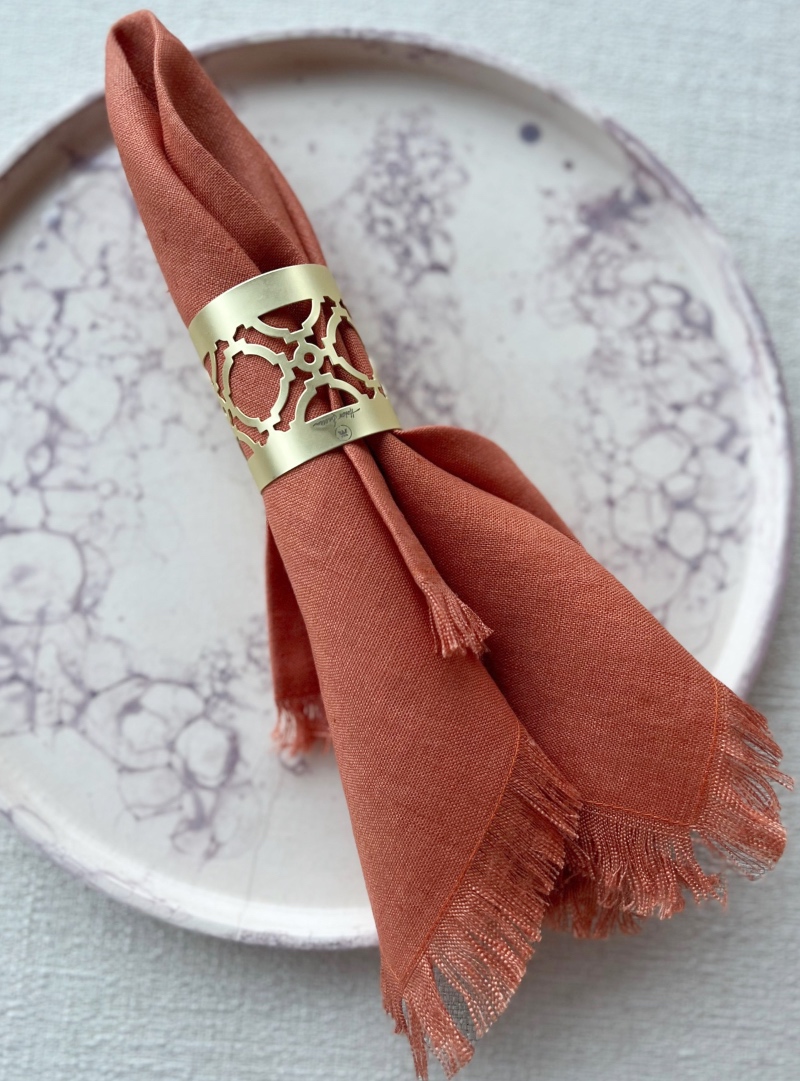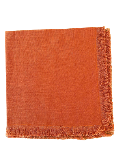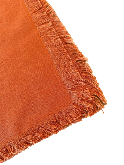 Vi har en liten kolleksjon med enkle linservietter. Mål 45x45 cm ink rysjekant. Praktiske og dekorative. Nydelig brent orange farge! Serviettene selges i pakker på to og to.