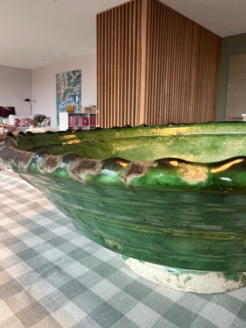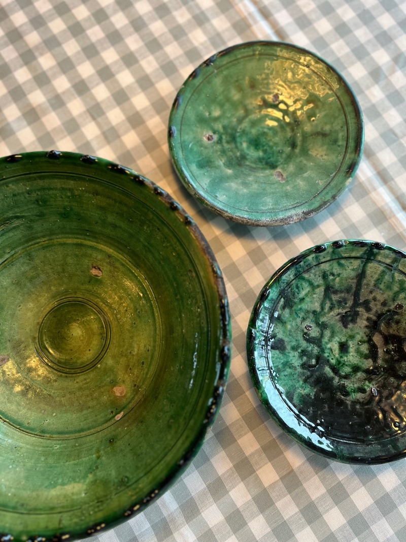 Vi har tatt inn noe marokkansk tamegroute keramikk laget for hånd i Sahara. Denne type keramikk er laget med enkle redskaper og er tung og uvøren, men helt fantastisk. Alle produktene kommer med små skjønnhetsfeil og nettopp det er en del av sjarmen her. Har hatt både skåler og lysestaker i tamegroute i mange år - blir aldri lei!