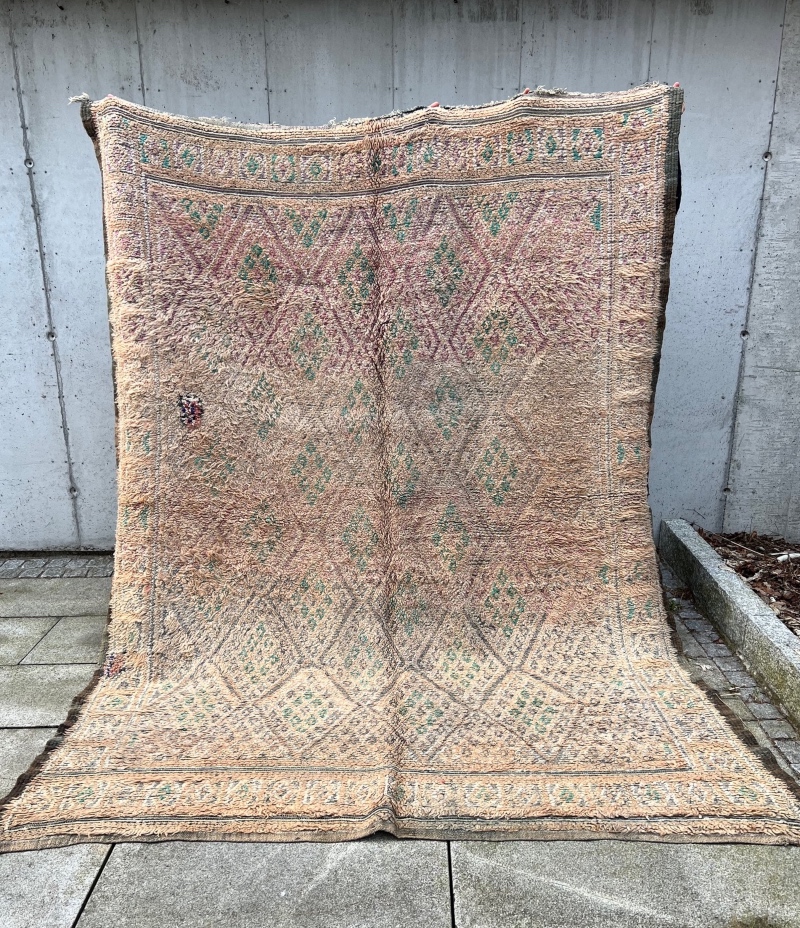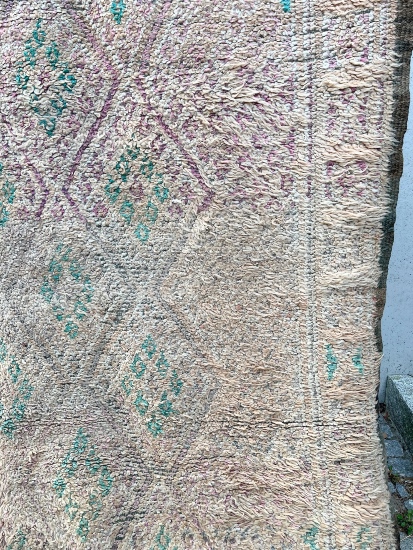 For det første innebærer vintage at teppet er brukt. De er vevd av kvinner i Marokko til eget bruk.