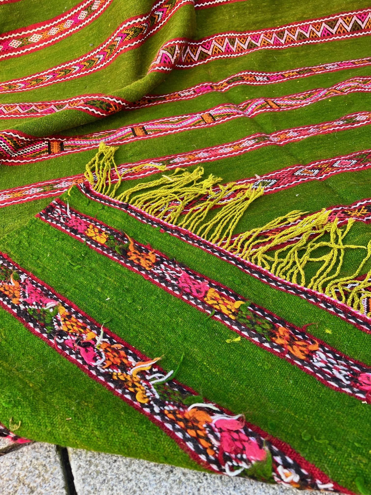 Et vakkert og litt sært kelimteppe er nå tilgjengelig. Skikkelig one-of-a-kind! Elsker fargene. Teppet er i god stand. Lett og enkelt å holde rent. Vil si dette er det perfekte teppet til en hyttevegg.