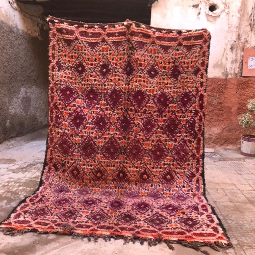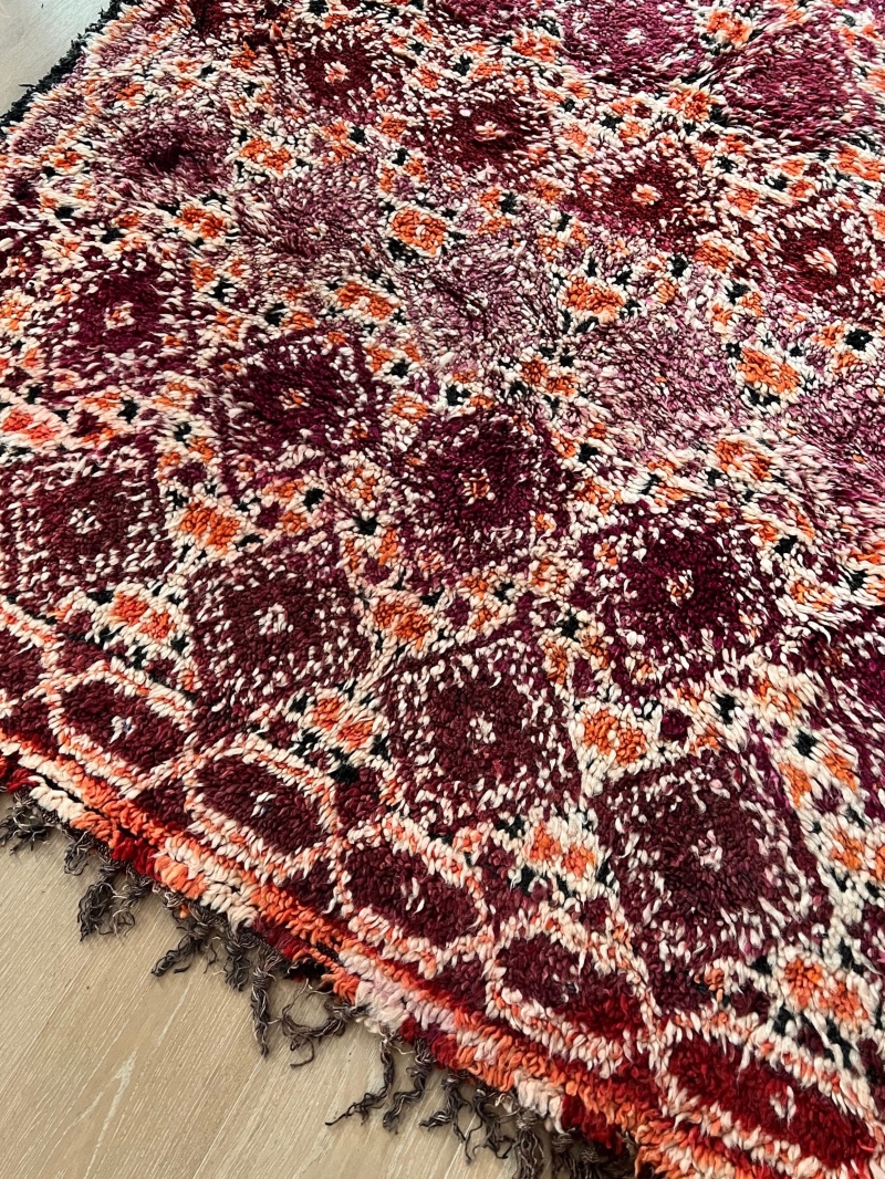 For det første innebærer vintage at teppet er brukt. De er vevd av kvinner i Marokko til eget bruk.