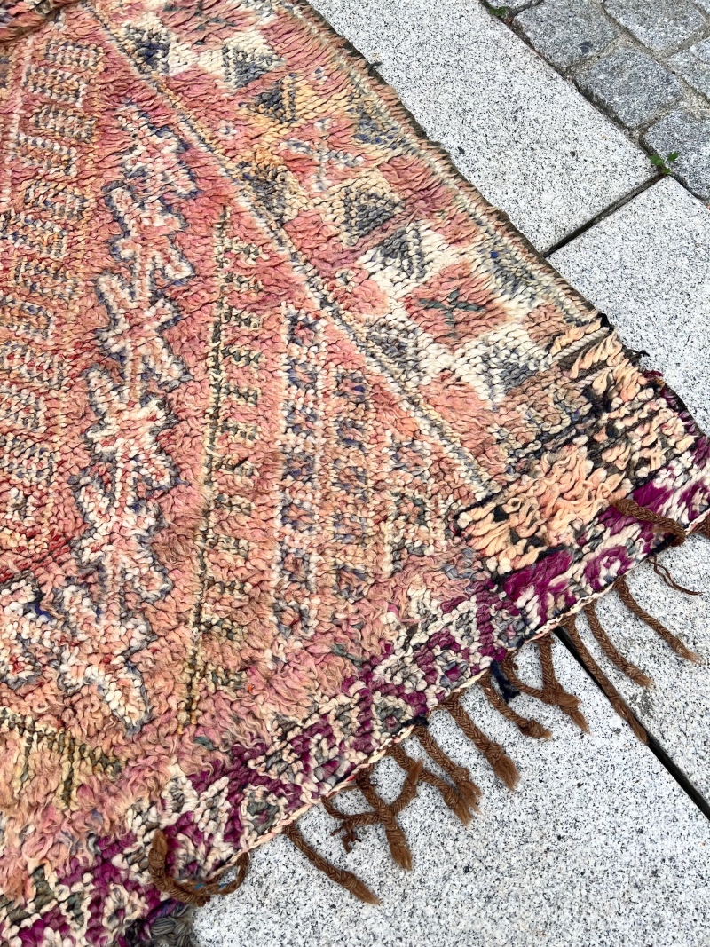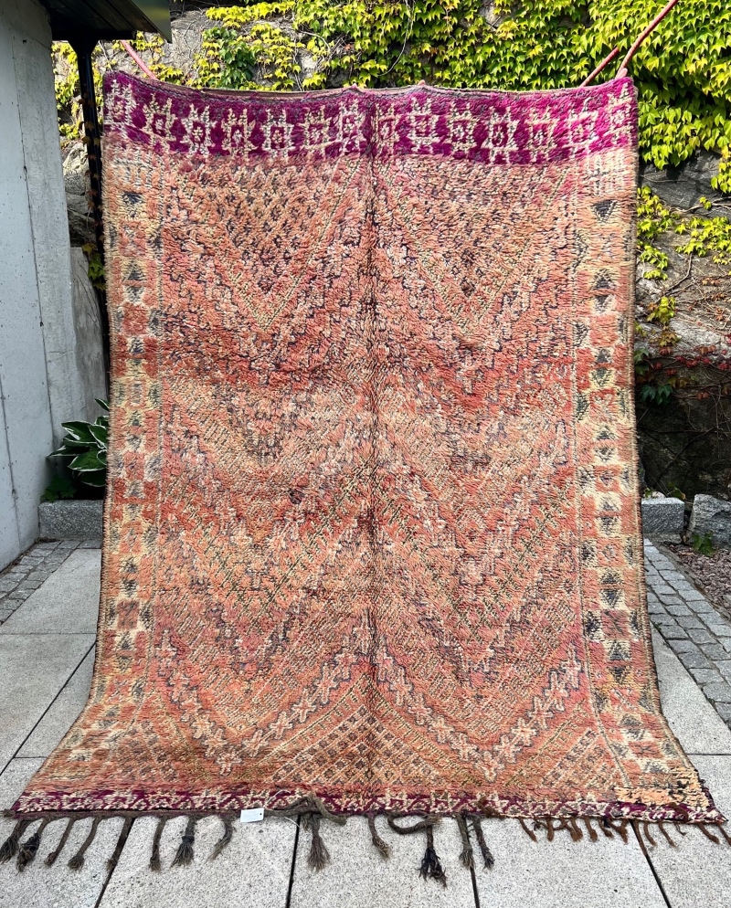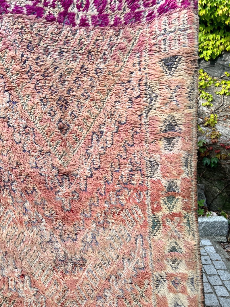 For det første innebærer vintage at teppet er brukt. De er vevd av kvinner i Marokko til eget bruk.