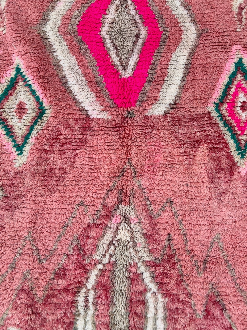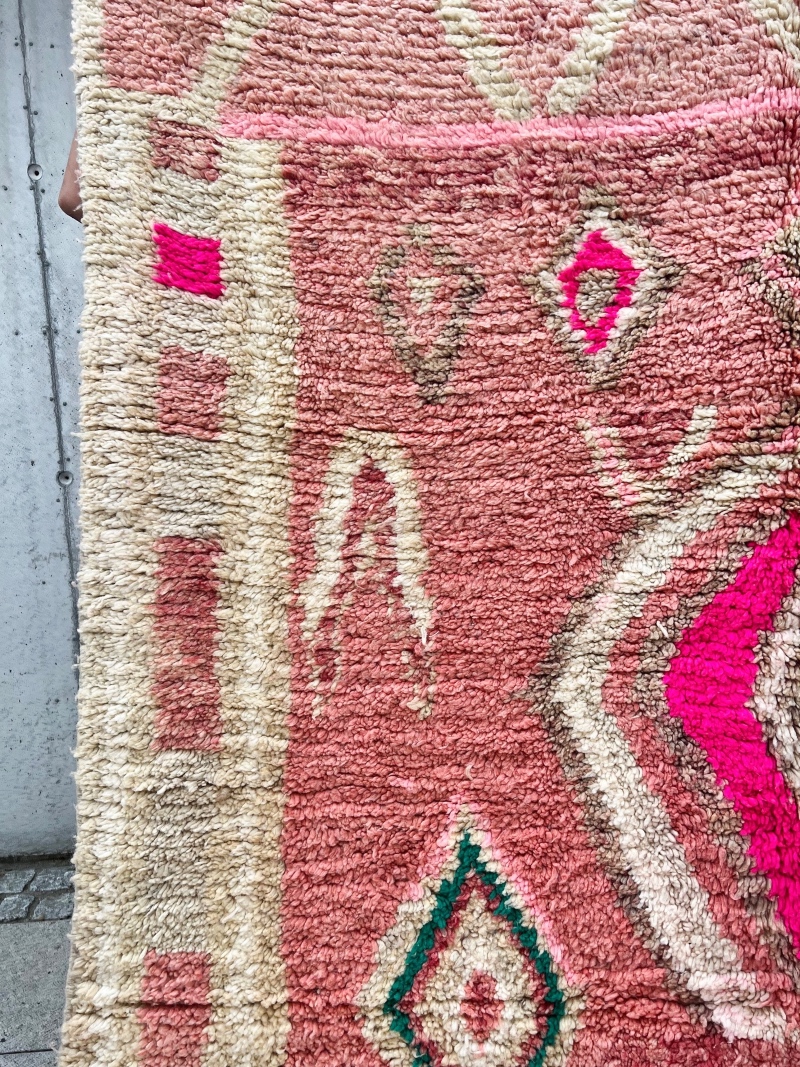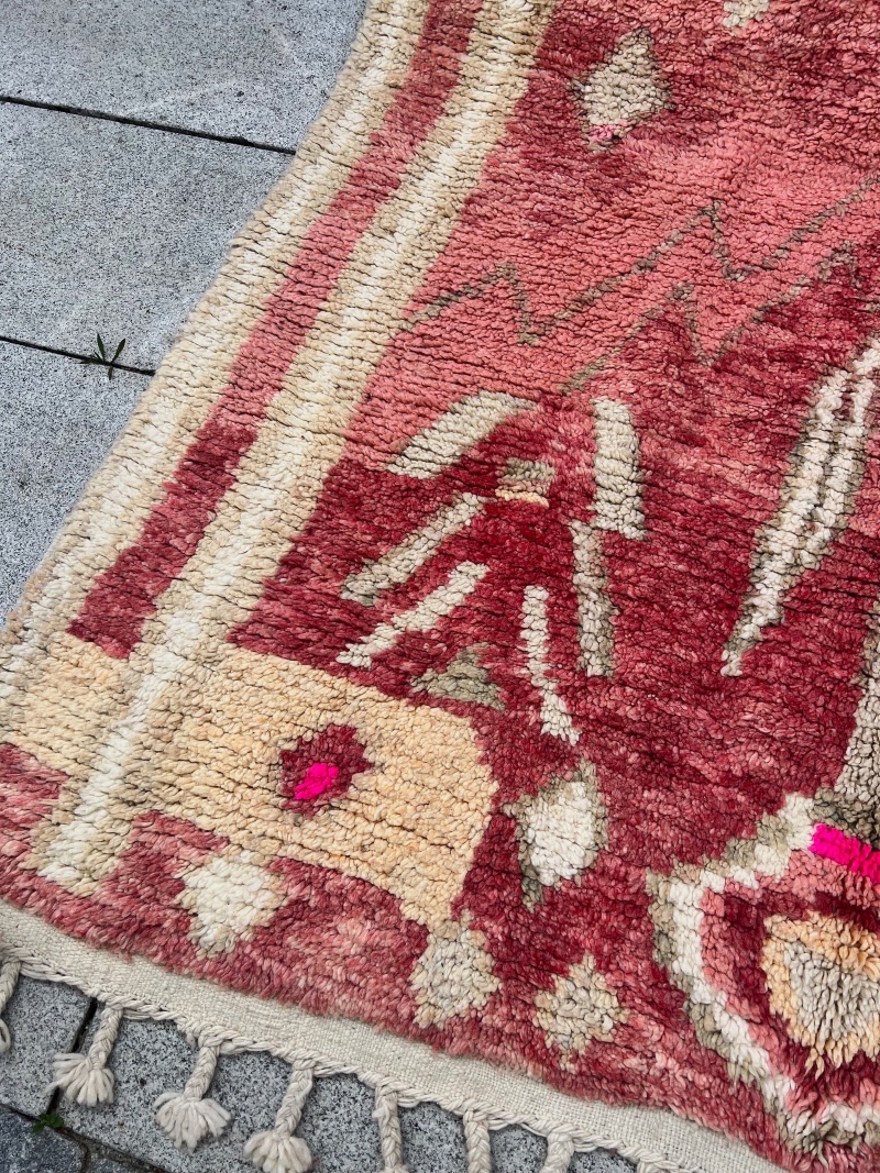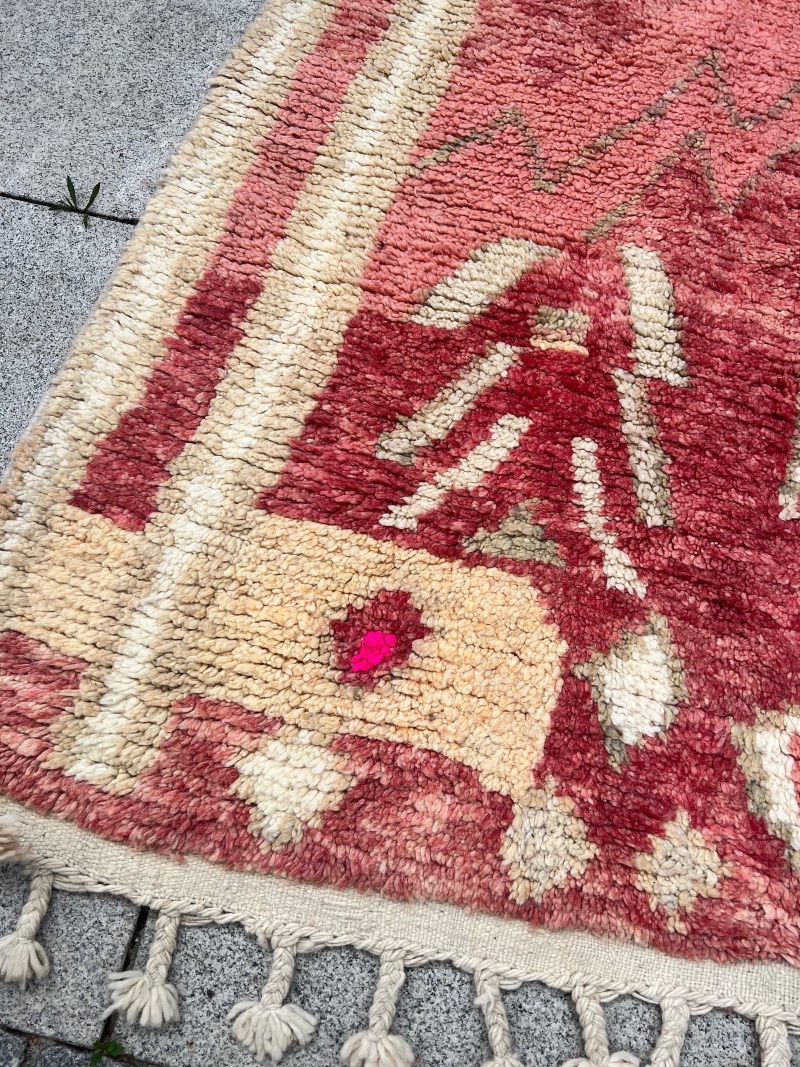 For det første innebærer vintage at teppet er brukt. De er vevd av kvinner i Marokko til eget bruk.