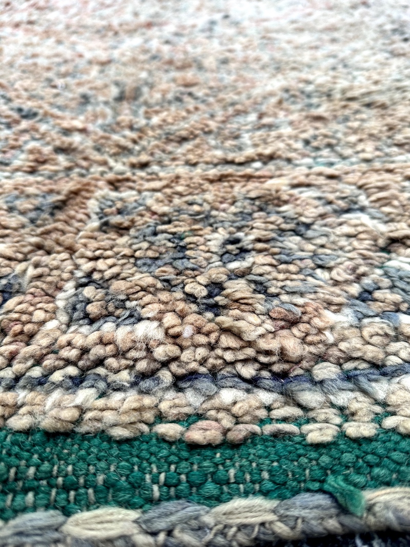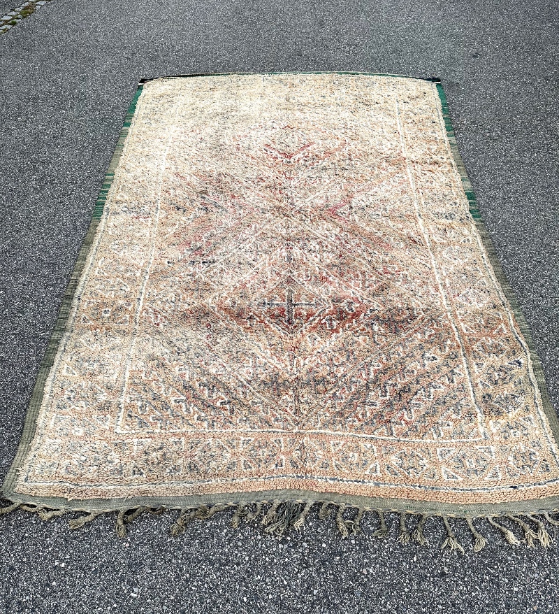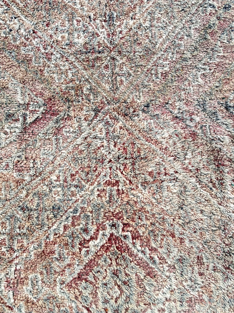 Berberteppene er knyttet for hånd i 100% ull og veves av kvinner til bruk i sine private hjem. De legger i flid fargebruk og mønster. Dette teppet er et såkalt Beni Mguild teppe. Kjennetegnes av geometriske mønstre. Et lite kunstverk man har gjennom alle år.