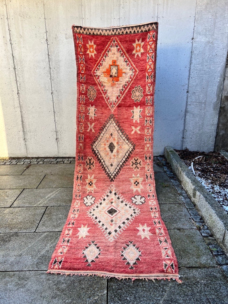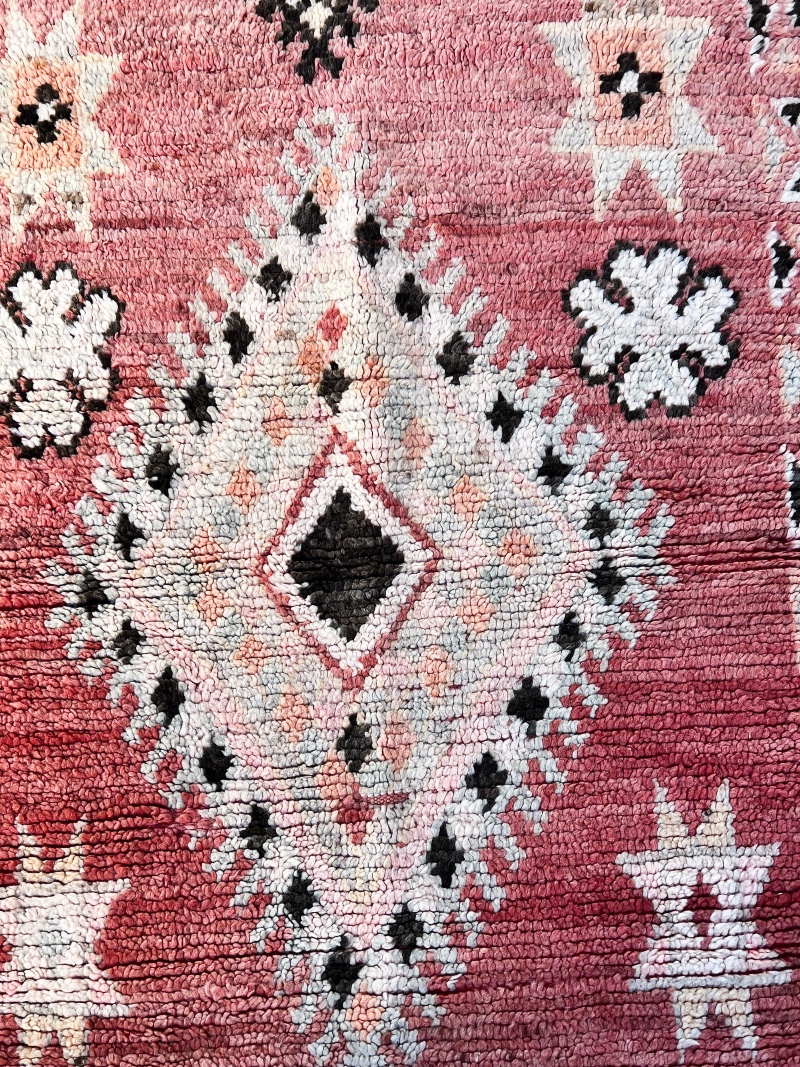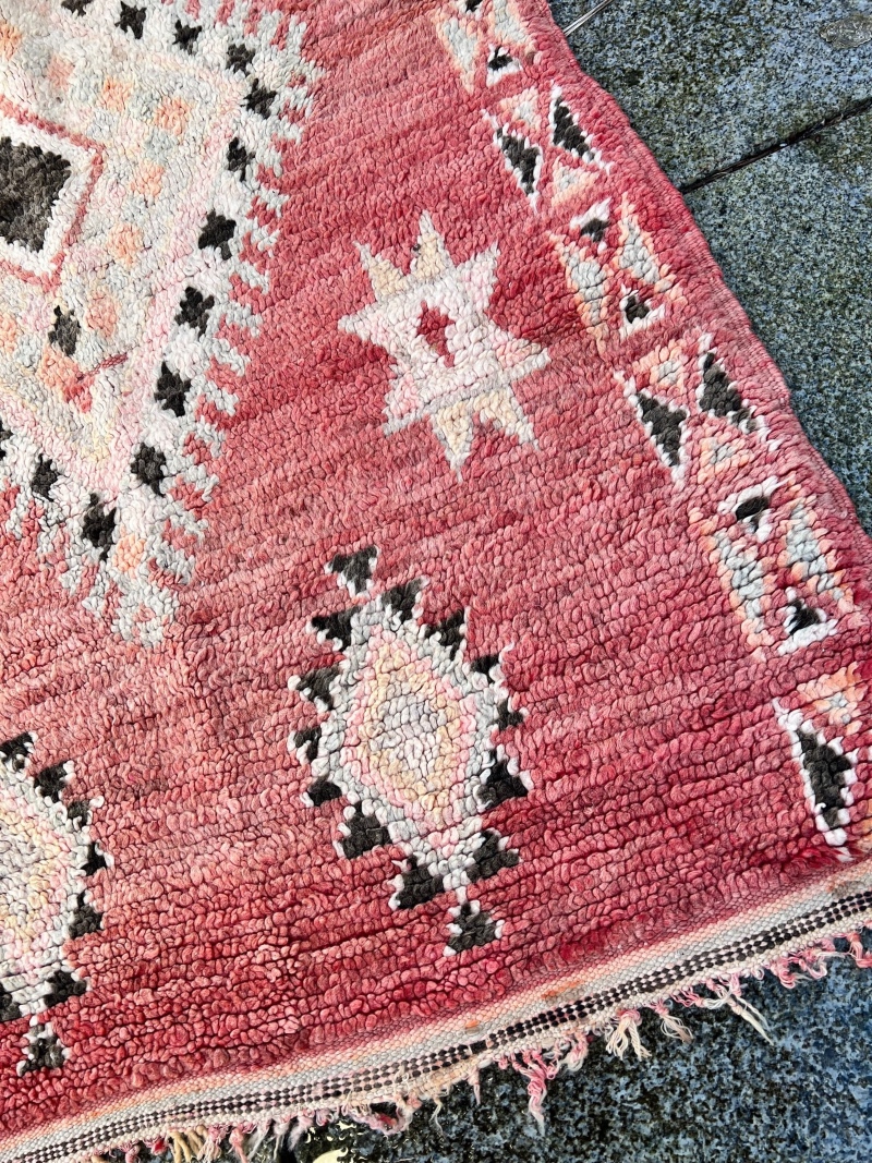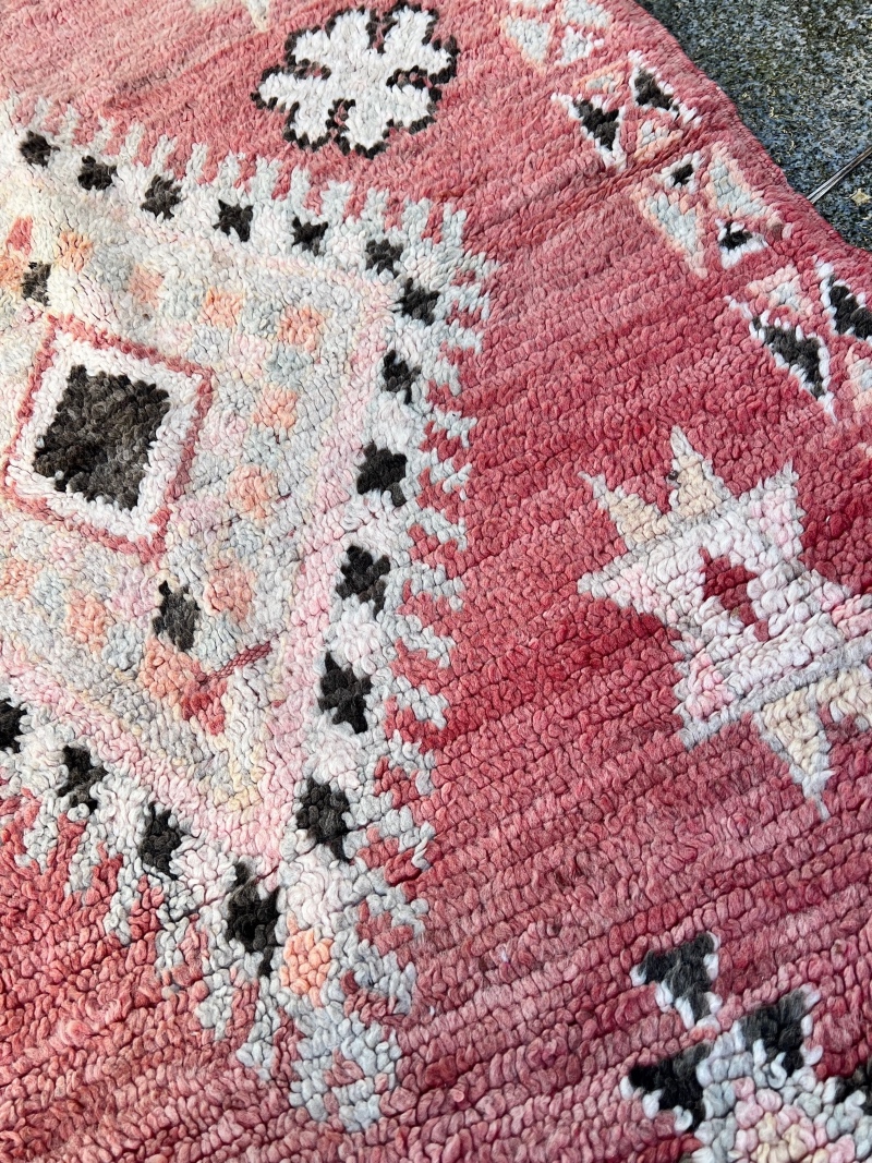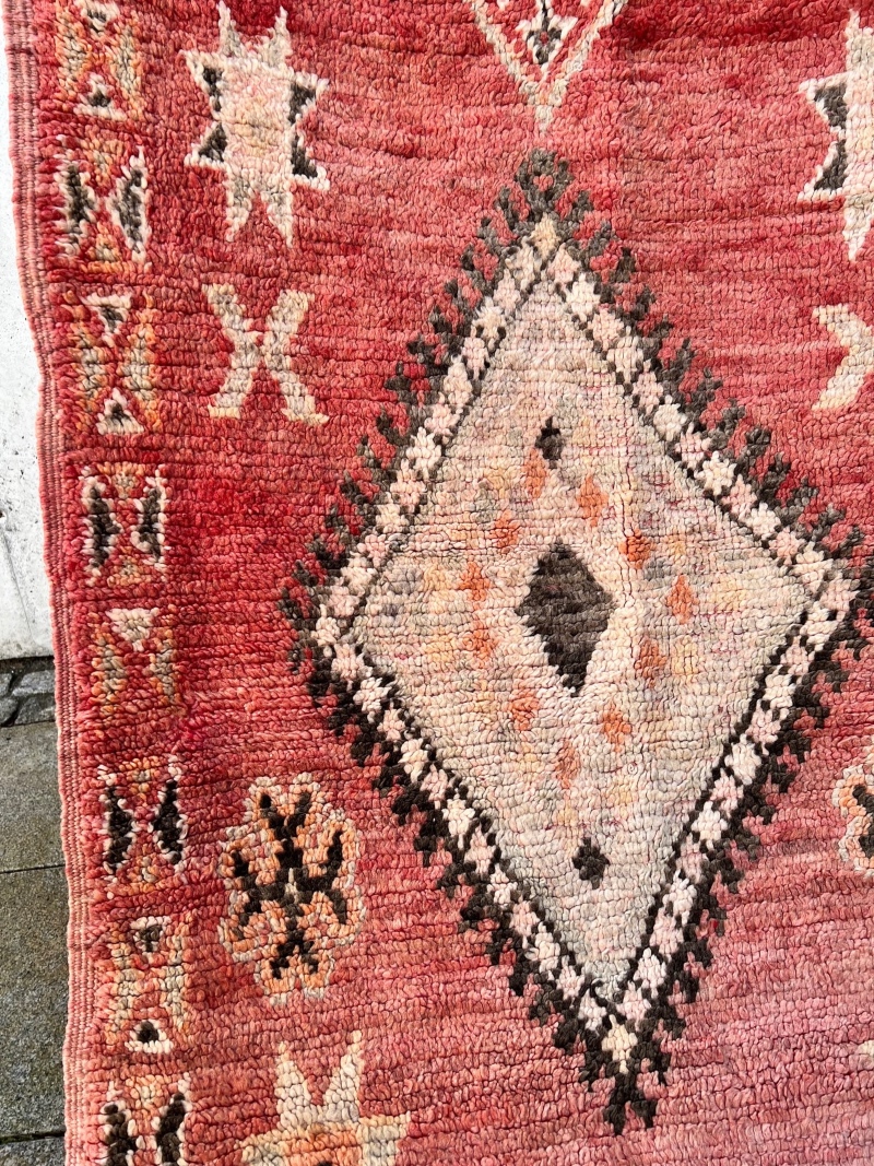 For det første innebærer vintage at teppet er brukt. De er vevd av kvinner i Marokko til eget bruk.