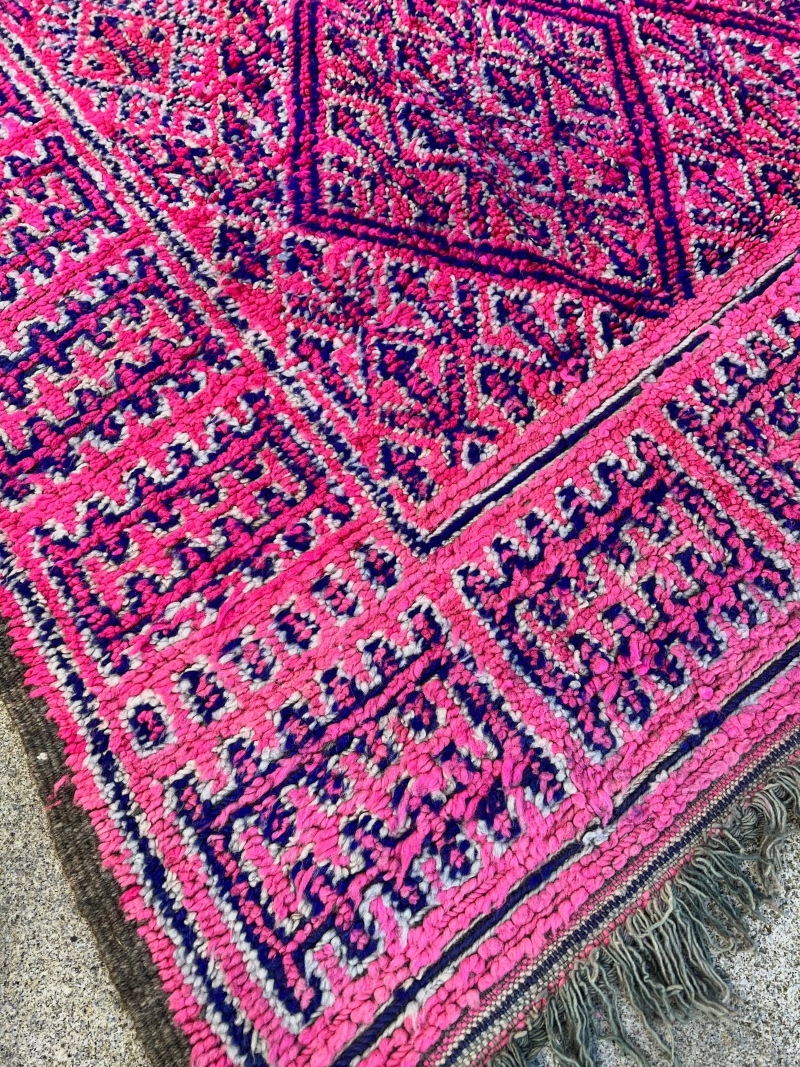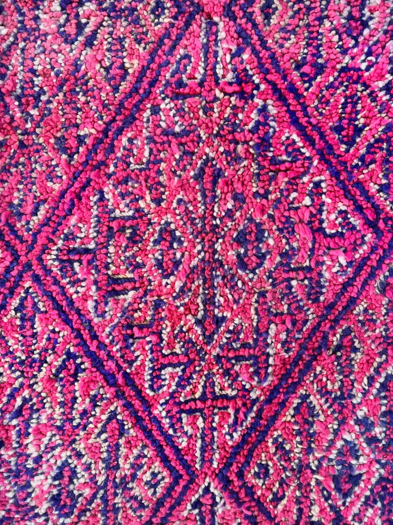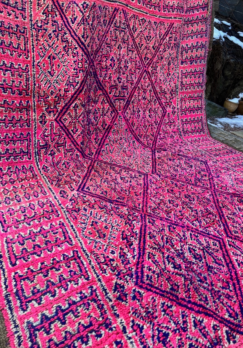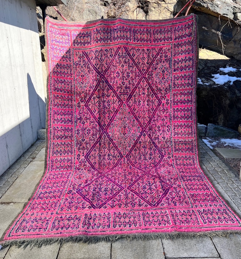 Et fargesterkt og nydelig Beni M´guild teppe i fantastiske farger! Klar rosa, naturhvit og lavendel-ish i kul kombinasjon. Dette teppet har patina og karakter. Vil gjøre underverker med et hvert rom! Helt unikt og vidunderlig!