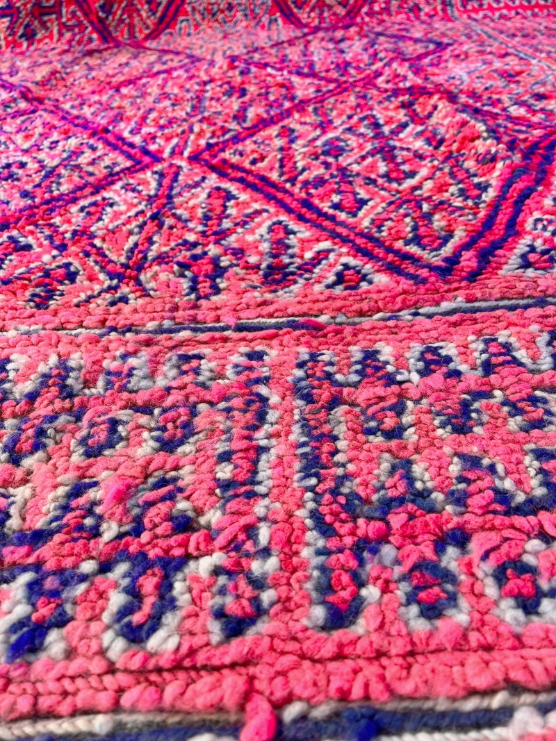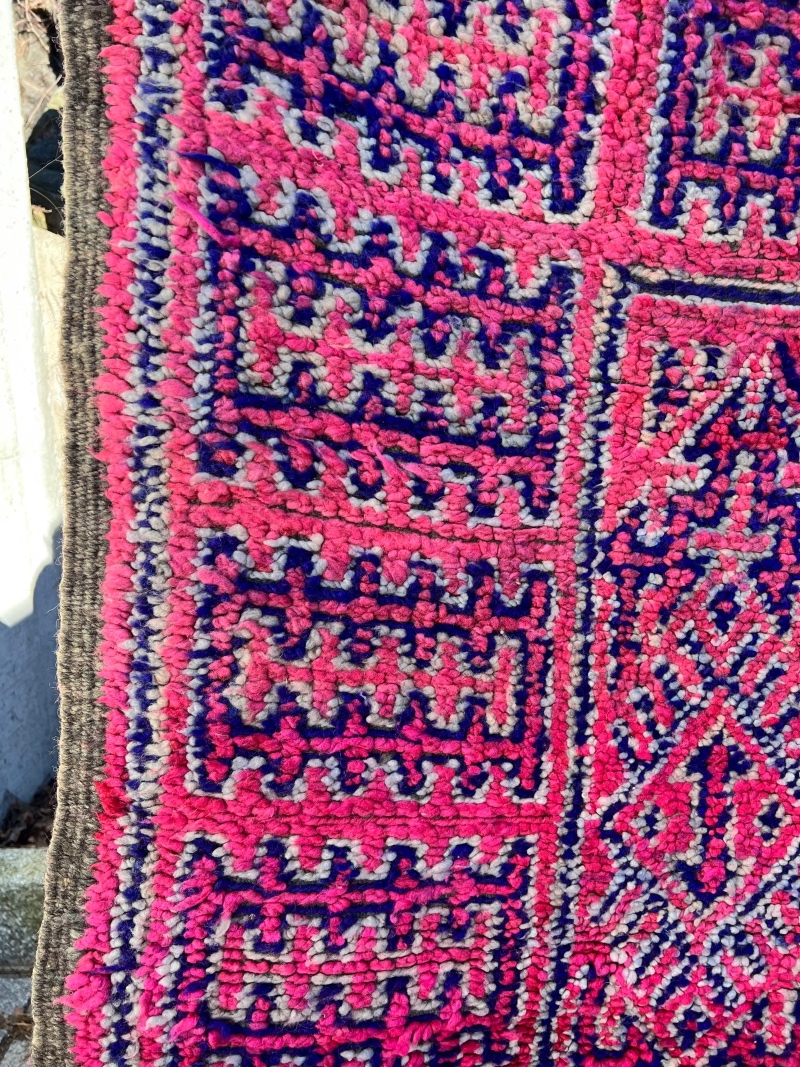For det første innebærer vintage at teppet er brukt. De er vevd av kvinner i Marokko til eget bruk.