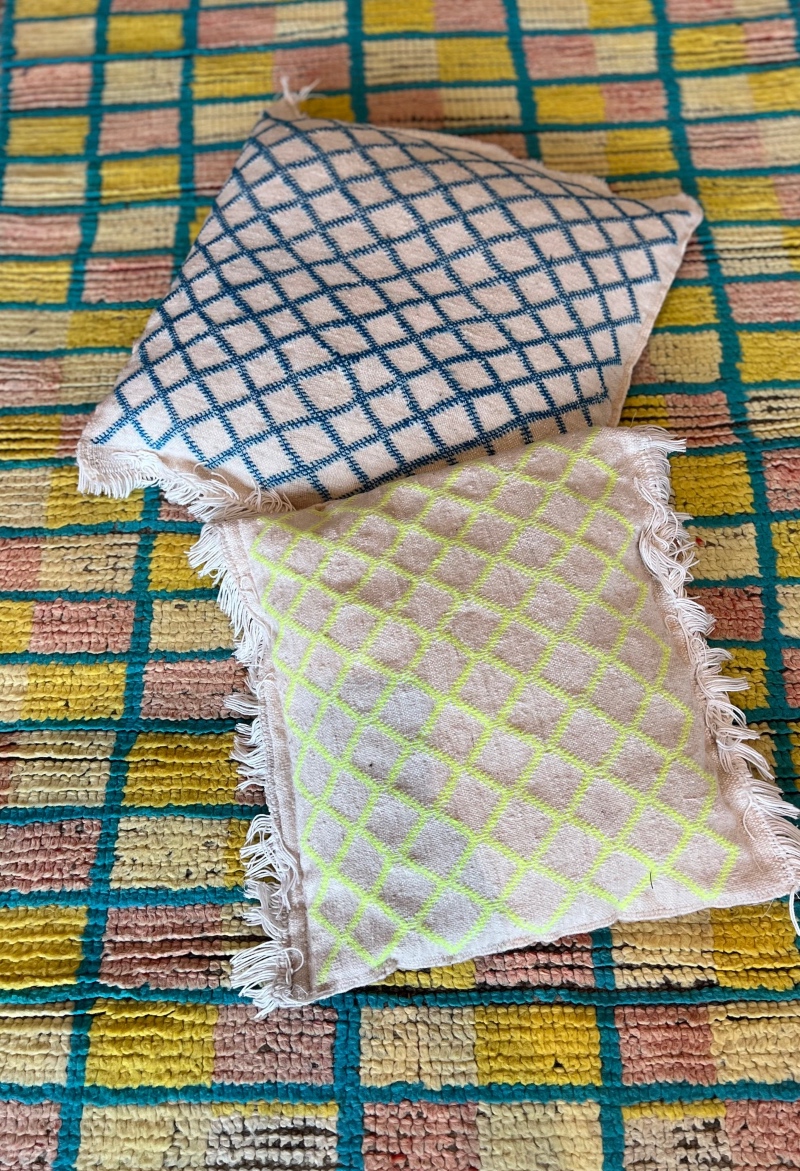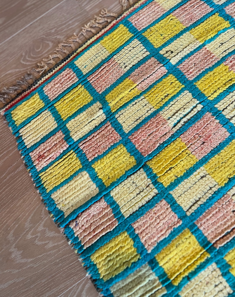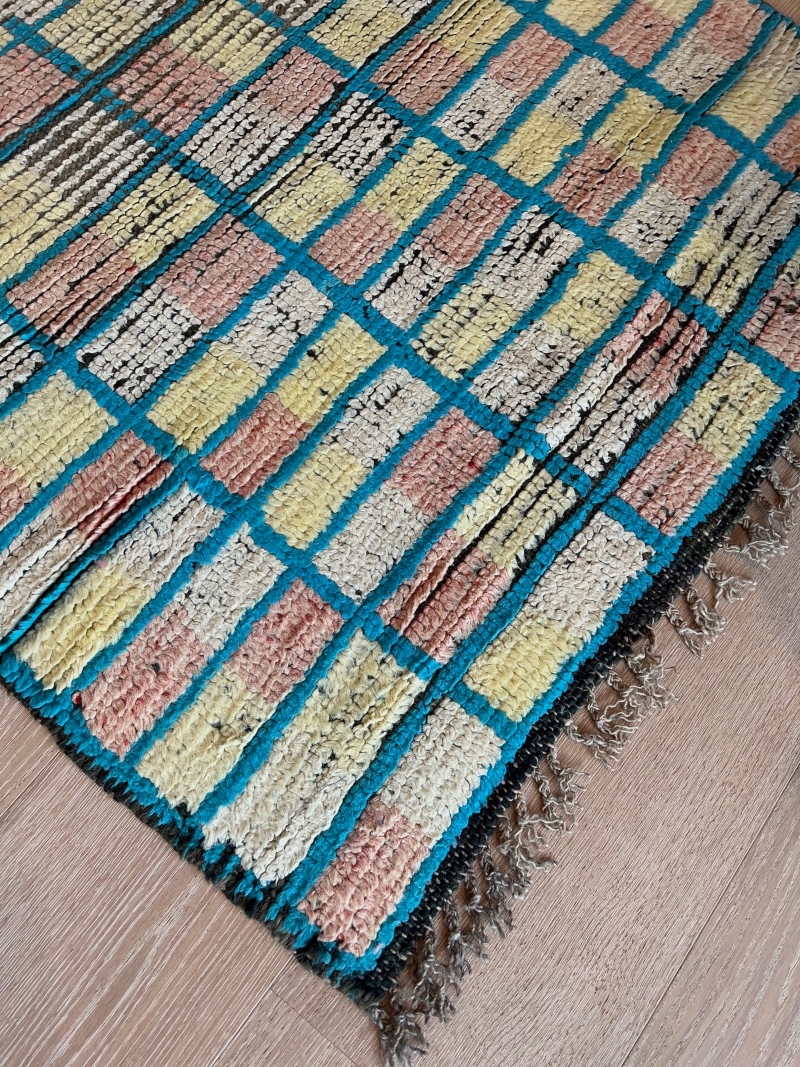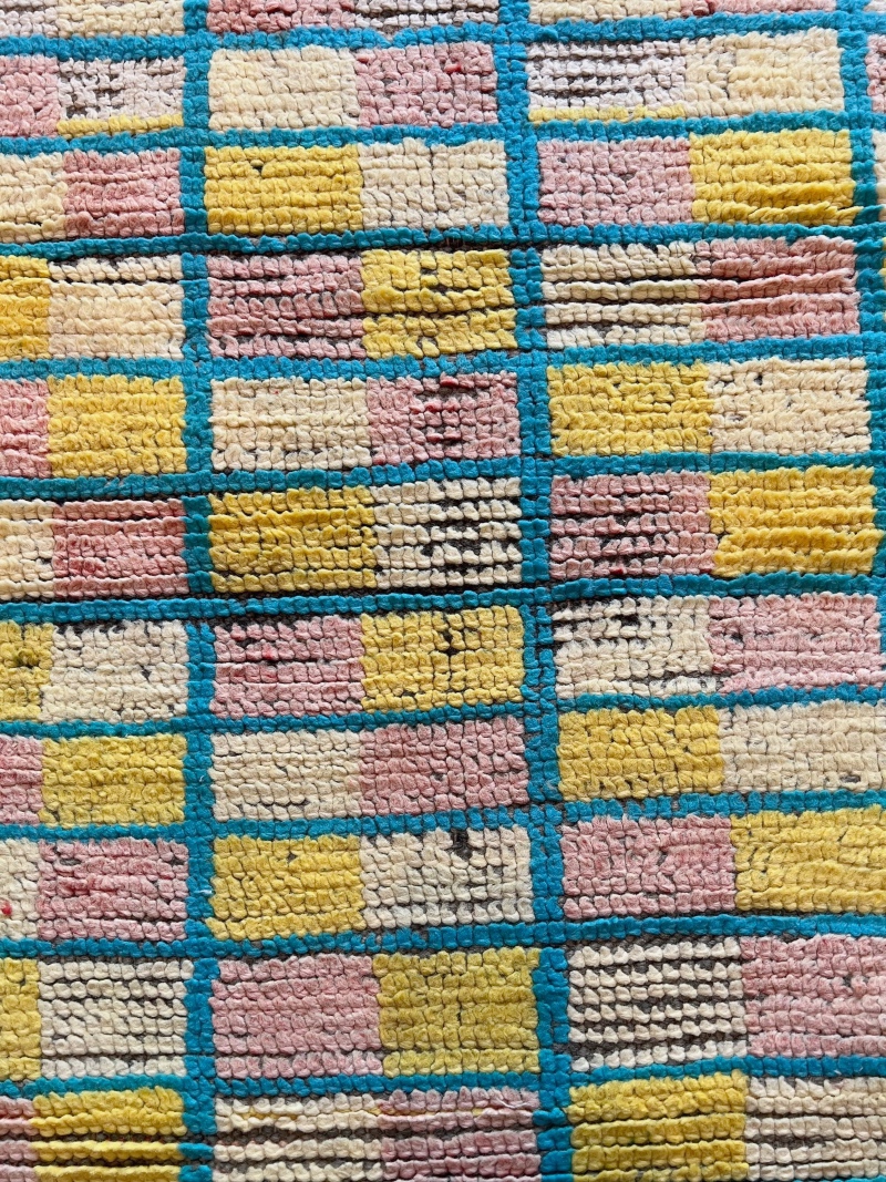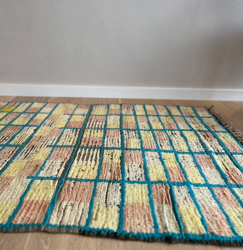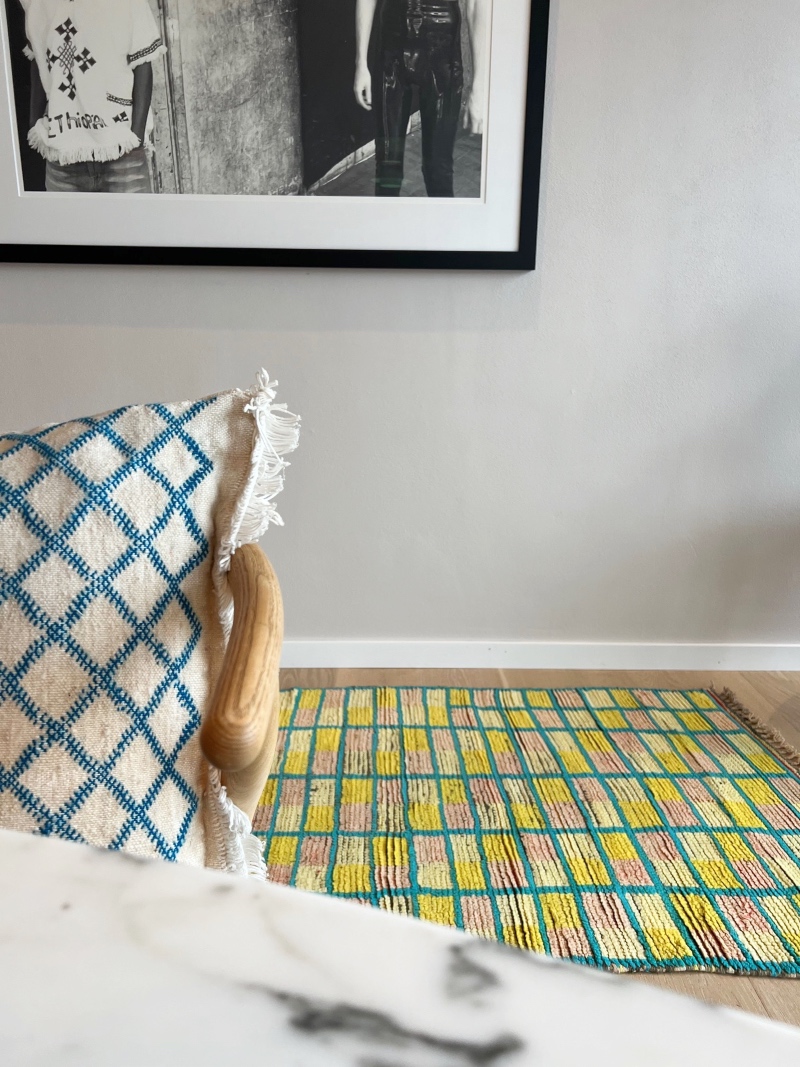 For det første innebærer vintage at teppet er brukt. De er vevd av kvinner i Marokko til eget bruk.